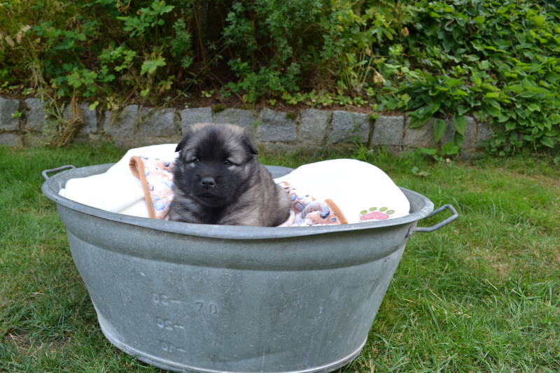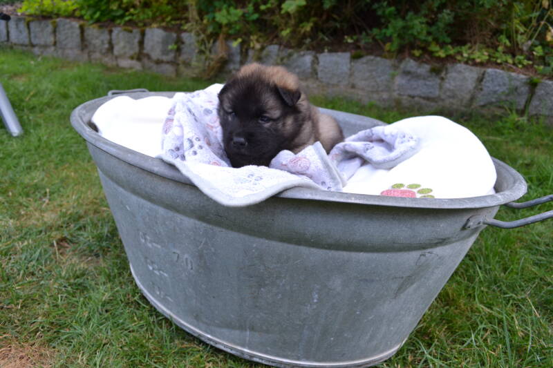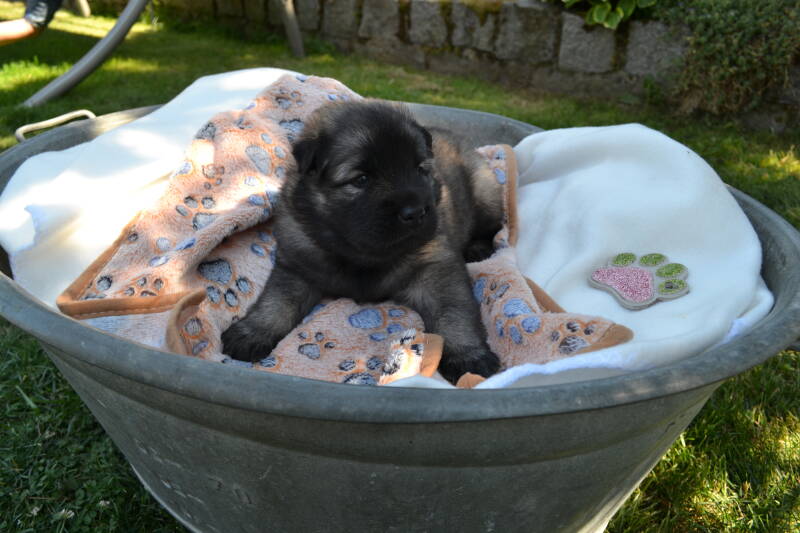 Schon wieder ist eine Woche um. Jetzt sind wir schon 5 Wochen alt. Letzte Woche war sehr aufregend, wir durften unsere neuen Besitzer kennenlernen. Unser rotes Deandl hat ihren kennenlerntag am Samstag.